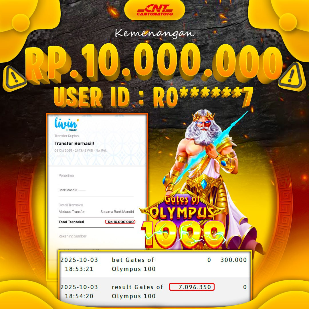 J4ckp*t lebih gampang pecah ???? Main sekarang jangan sampai ketinggalan cuan besar! Hanya di CANTONATOTO ❤️SEL4M4T KEPADA M3MB3R S3TIA CANTONATOTO ????TANGGAL : 3 OKTOBER 2025 ????USER ID : RO******7 ????B0 : CNTT ????M3N4NG : Gates of Olympus 1000 ????RP. 10.000.000